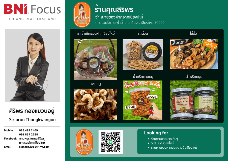 ชื่อธุรกิจ: ร้านคุณสิริพร (ร้านขายของฝากจากเชียงใหม่)