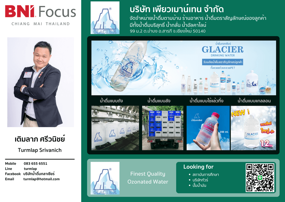 บริษัท เพียวเมาน์เทน จำกัด : จัดจำหน่ายน้ำดื่มตามบ้าน ร้านอาหาร น้ำดื่มตราสัญลักษณ์ของลูกค้า มีทั้งน้ำดื่มบริสุทธิ์ น้ำกลั่น น้ำอัลคาไลน์
