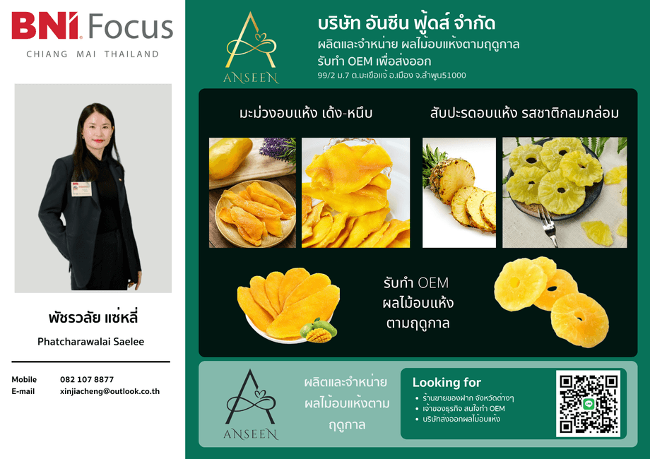 บริษัท อันซีน ฟู้ดส์ จำกัด : ผลิตและจำหน่าย ผลไม้อบแห้งตามฤดูกาล