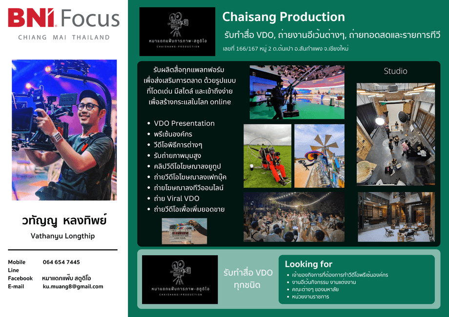 ชื่อธุรกิจ : Chaisang Production (หมาแดกแฟ๊บการภาพ-สตูดิโอ)